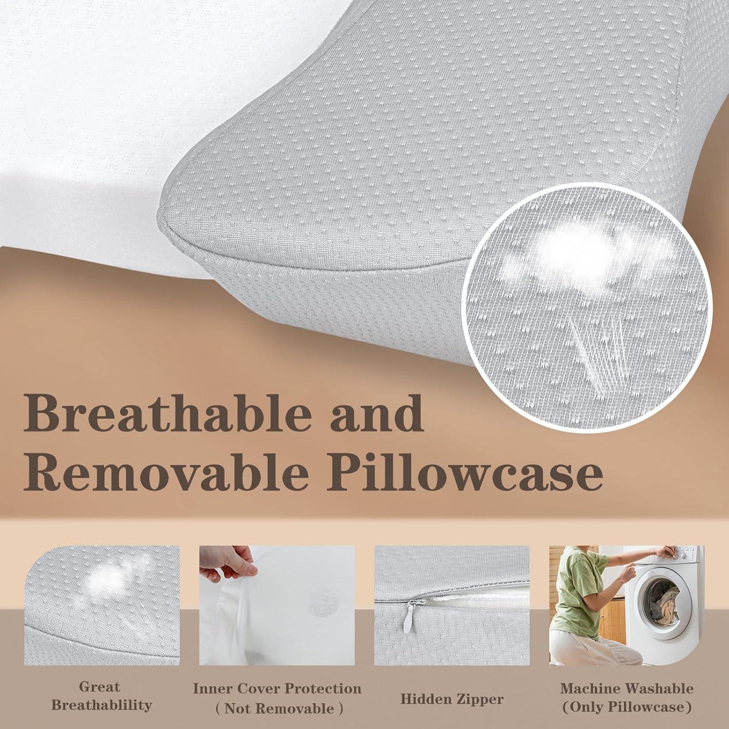 【Premium CertiPUR-US Memory Foam】Made with high-quality, certified memory foam that is safe, odorless, and supportive. The slow-rebound foam adapts to your head and neck contours, ensuring lasting comfort and proper spinal alignment.