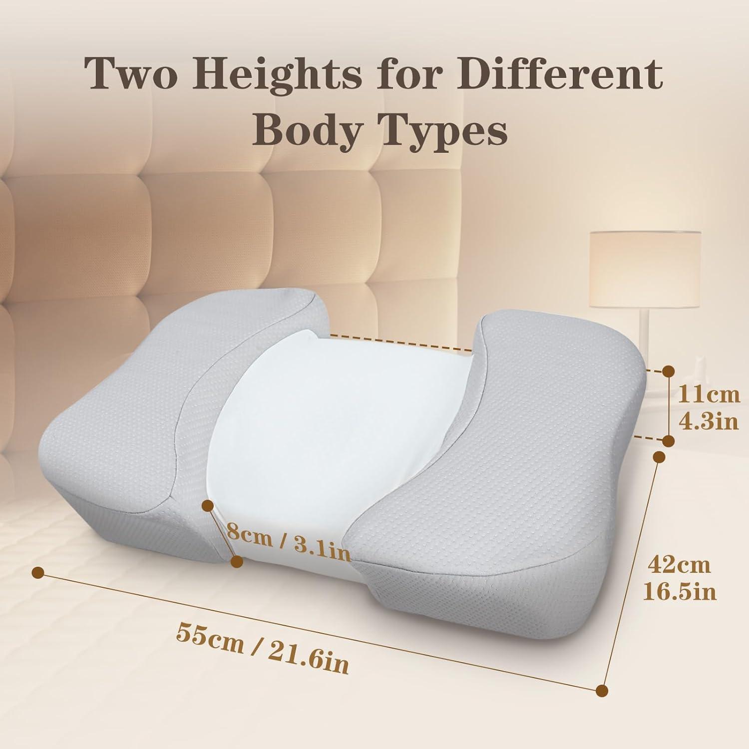 【Enhanced Neck & Shoulder Support】The unique curved shape hugs the neck and shoulder area, providing targeted support and reducing strain. Ideal for those seeking improved posture and pressure relief while sleeping on their back.
